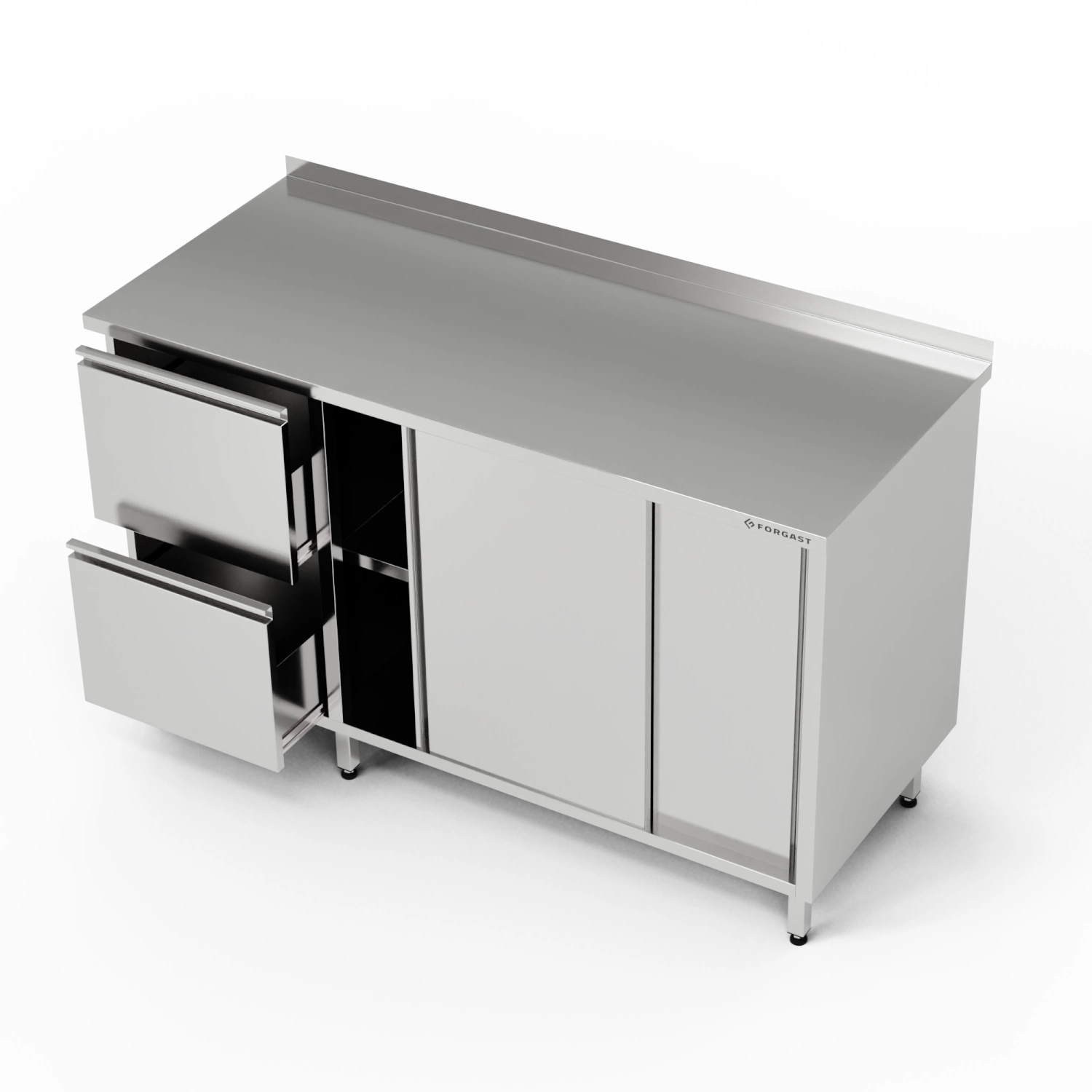 Stół roboczy nierdzewny z szafką i blokiem szuflad 210x70x85 cm | FORGAST