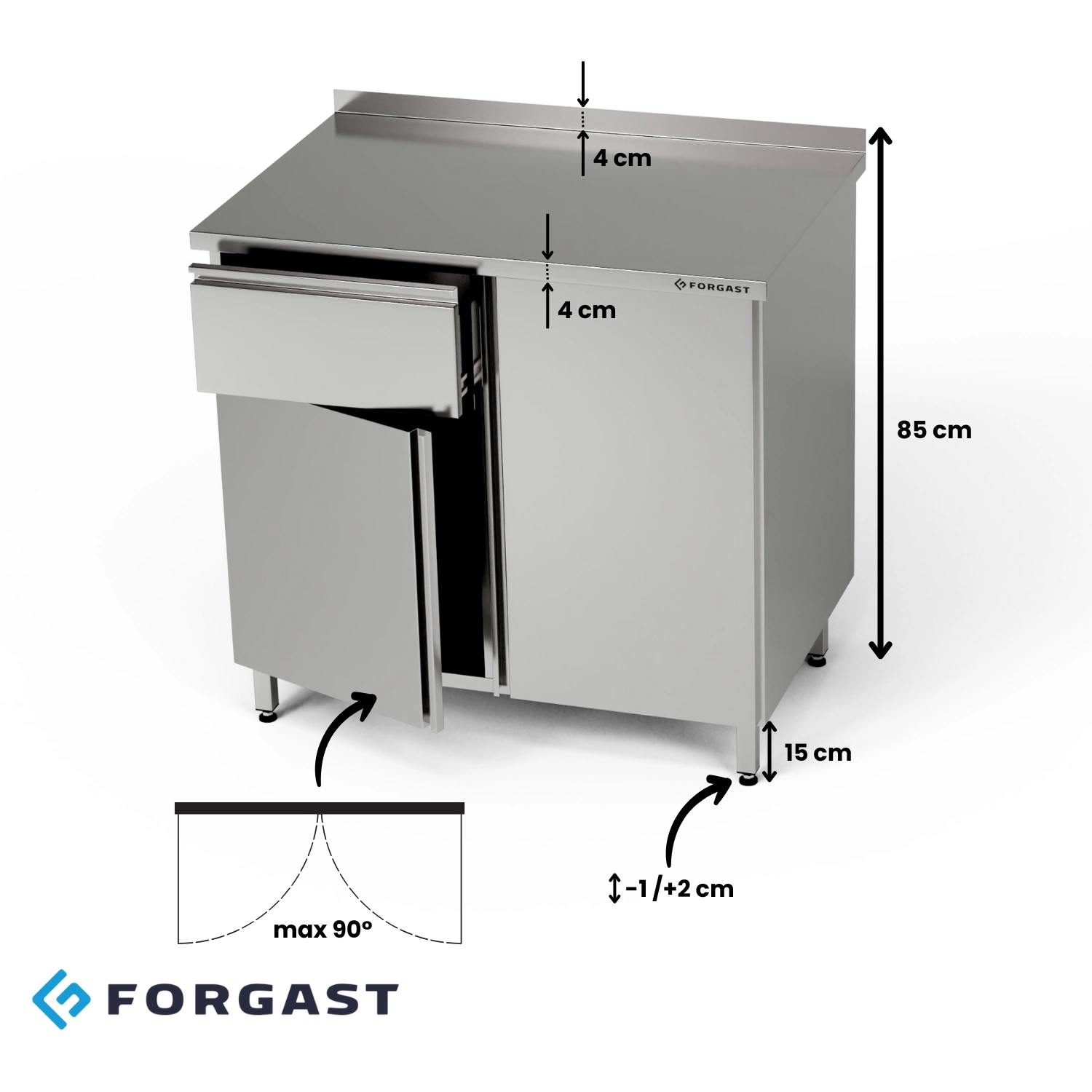 | Stół roboczy nierdzewny z szafką i szufladą 130x70x85 cm | FORGAST |