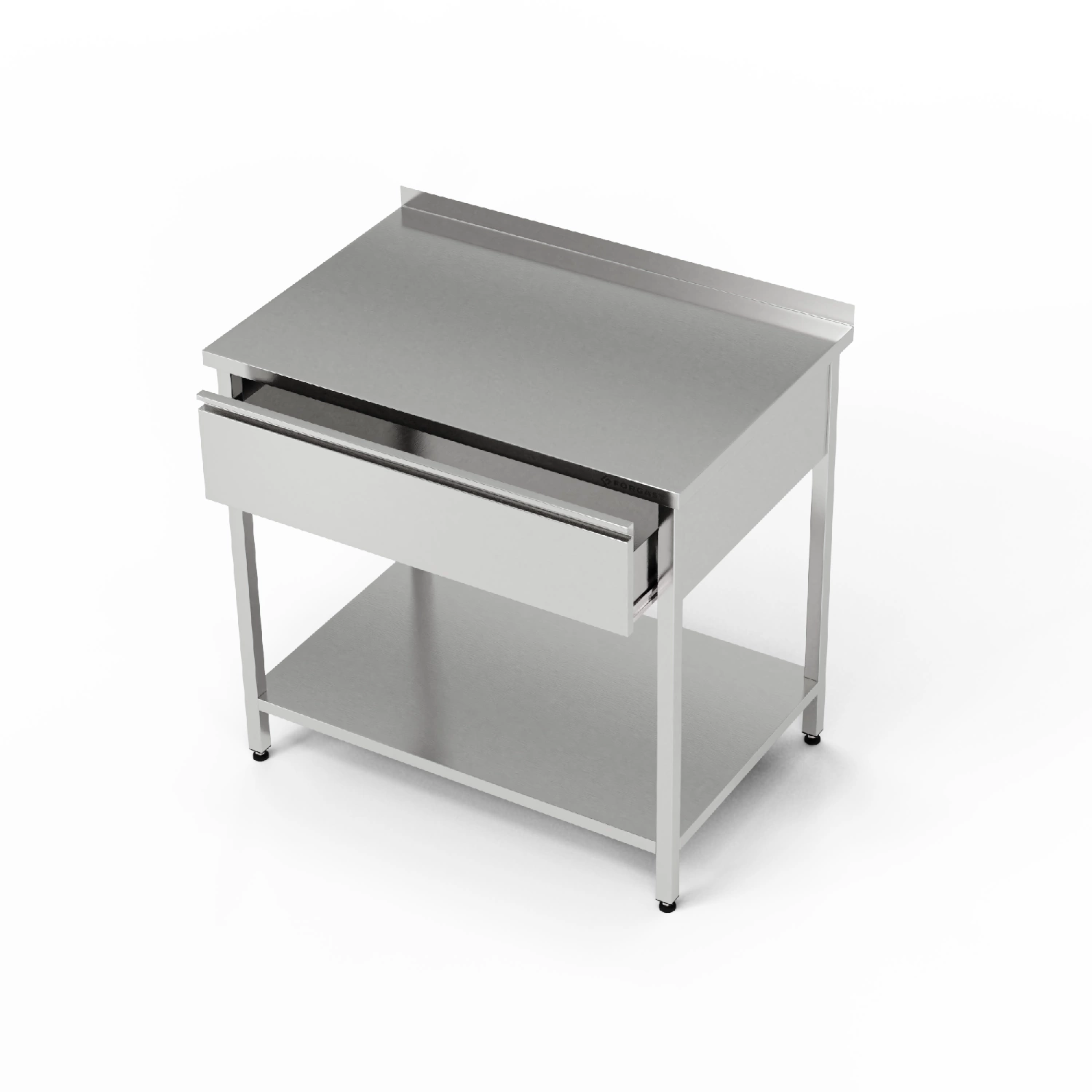 Stół roboczy o wymiarach 70x70x85 cm z szufladą wykonany ze stali nierdzewnej J4.