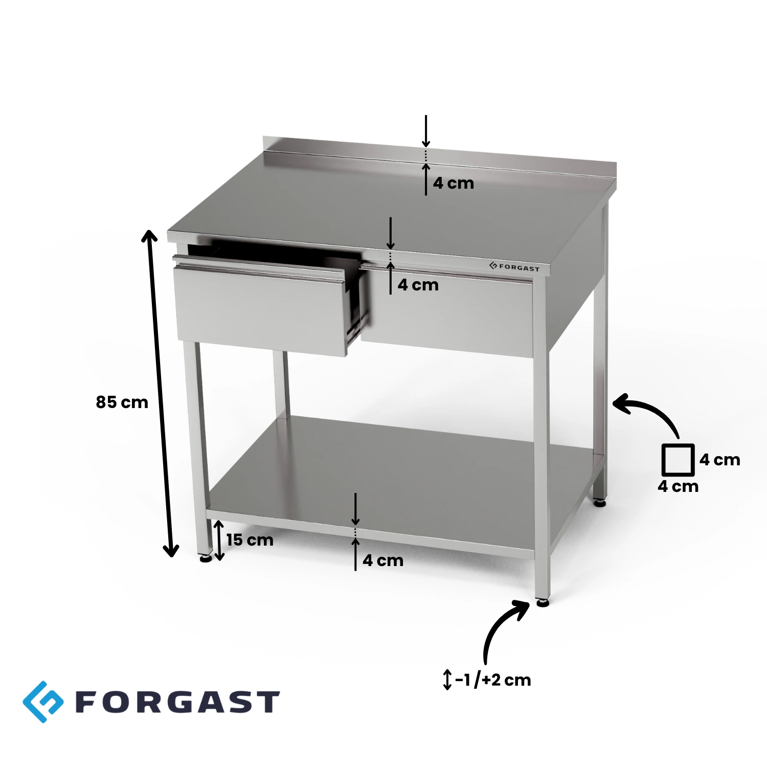 Stół roboczy nierdzewny z szufladami i półką dolną 90x70x85 cm | FORGAST
