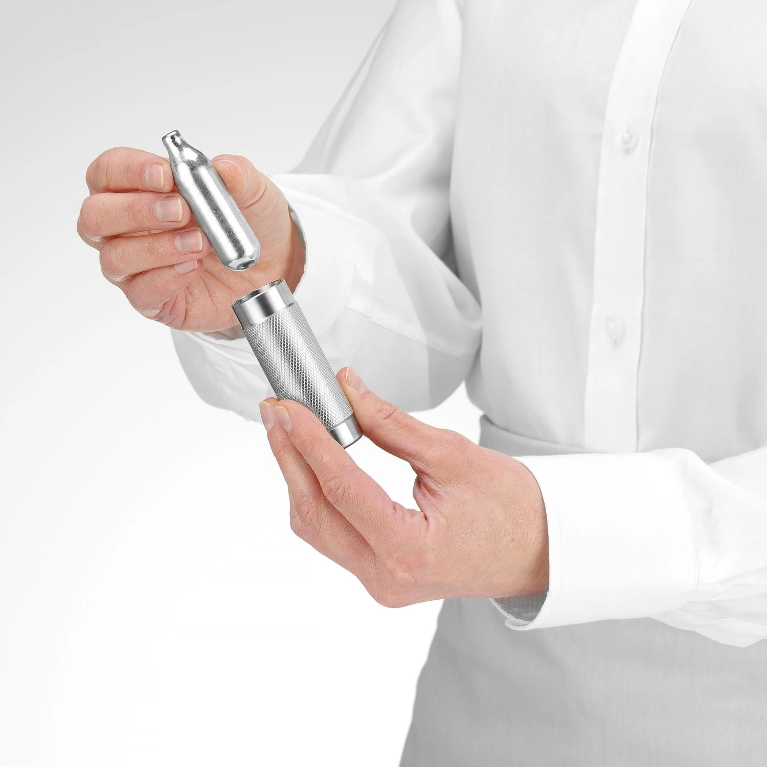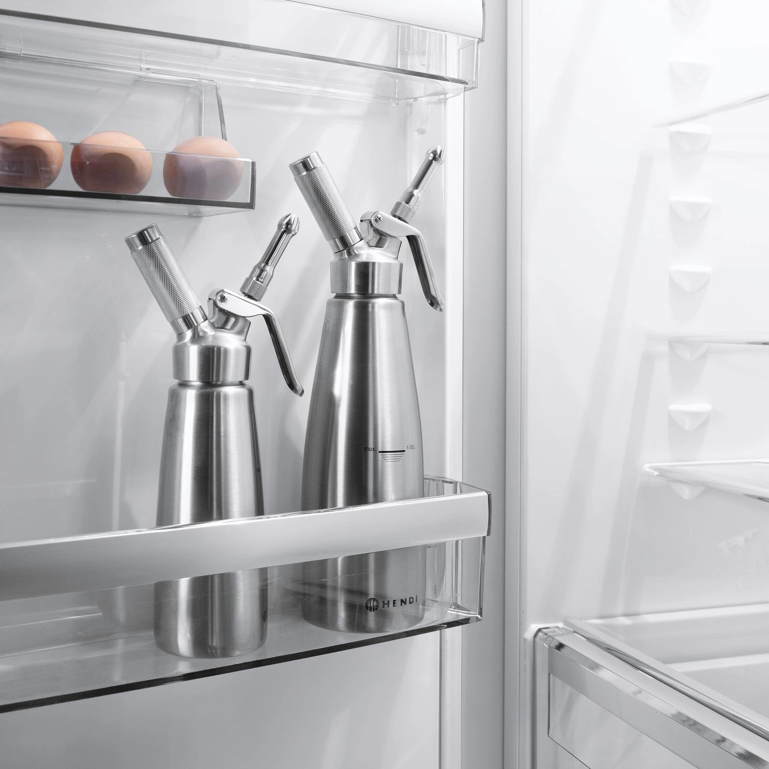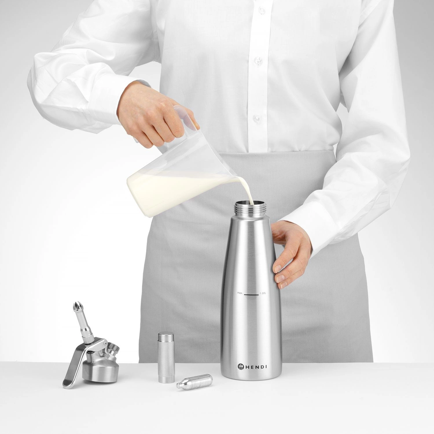Syfon do wytwarzania bitej śmietany, kremów, sosów oraz musów wykonany ze stali nierdzewnej. Idealne rozwiązanie dla kawiarni, barów, restauracji, lodziarni, bistro i punktów z goframi. W syfonie można także przygotować gorące sosy.