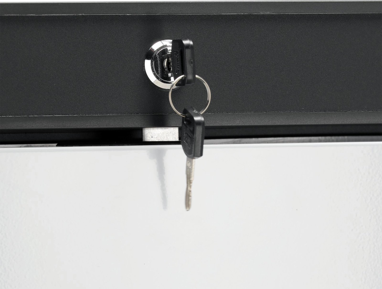 Samozamykające drzwi z zamkiem – umożliwiają wygodne zamykanie urządzenia, a dodatkowo zapewniają bezpieczeństwo przechowywanych produktów. Możliwość zmiany strony otwierania drzwi pozwala na dostosowanie szafy do przestrzeni roboczej.