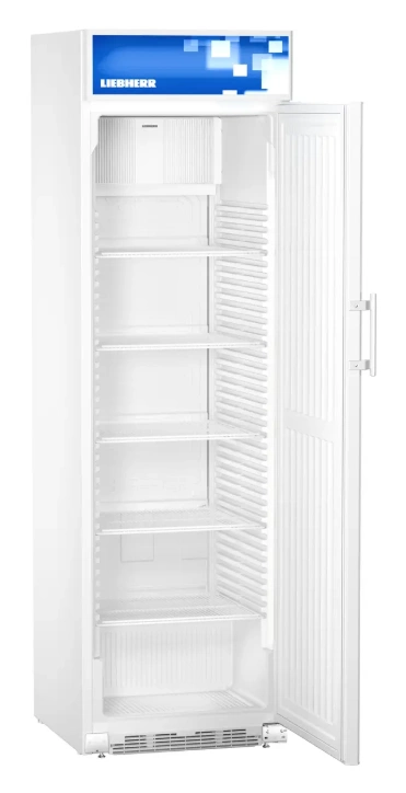 Liebherr FKDv 4211 to elegancka i wydajna szafa chłodnicza, idealna do prezentacji napojów i produktów w punktach sprzedaży. Dzięki energooszczędnemu chłodzeniu, oświetleniu LED i przyjaznym dla środowiska czynnikiem chłodniczym jest to urządzenie zarówno ekonomiczne, jak i przyjazne naturze. Przestronność, łatwość obsługi oraz możliwość dostosowania wyglądu sprawiają, że to doskonałe rozwiązanie do każdej przestrzeni handlowej.