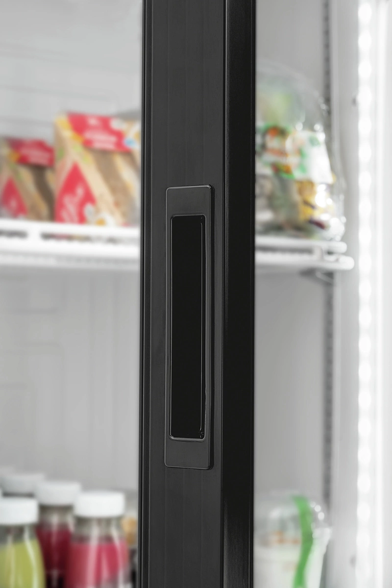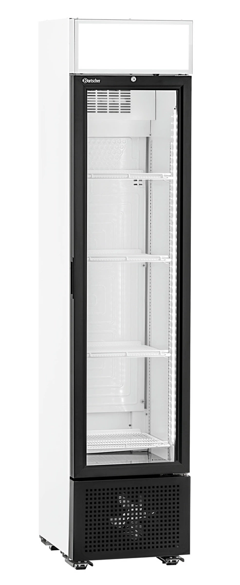 Elegancka, wysoka szafa chłodnicza BARTSCHER GTK1-123 to idealne rozwiązanie do stref samoobsługowych, sklepów czy bufetów. Dzięki przeszklonym drzwiom z podwójnym przeszkleniem, podświetlanemu wnętrzu oraz oświetlanemu LED-owemu displayowi reklamowemu, produkty są prezentowane w sposób estetyczny i przyciągający uwagę klientów.