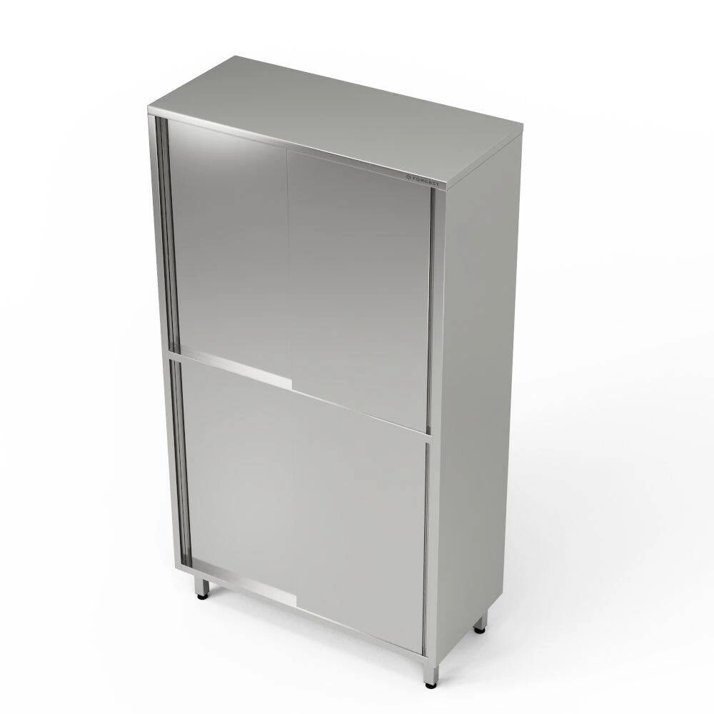 Szafa magazynowa dzielona w poziomie o wymiarach 110x50x180 cm, wykonana ze stali nierdzewnej J4. W szafie znajdują się 4 półki. Drzwi przesuwne.