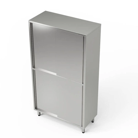 Szafa magazynowa dzielona w poziomie o wymiarach 80x60x200 cm, wykonana ze stali nierdzewnej J4. W szafie znajdują się 2 półki. Drzwi przesuwne.