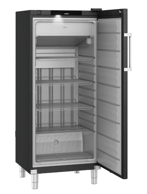 Wytrzymała stalowa obudowa BlackSteel oraz wnętrze z łatwego w czyszczeniu tworzywa gwarantują trwałość i prostą pielęgnację. Samozamykające się drzwi, mechaniczny zamek oraz odpływ wody z odszraniania zwiększają bezpieczeństwo użytkowania i chronią przechowywane produkty.