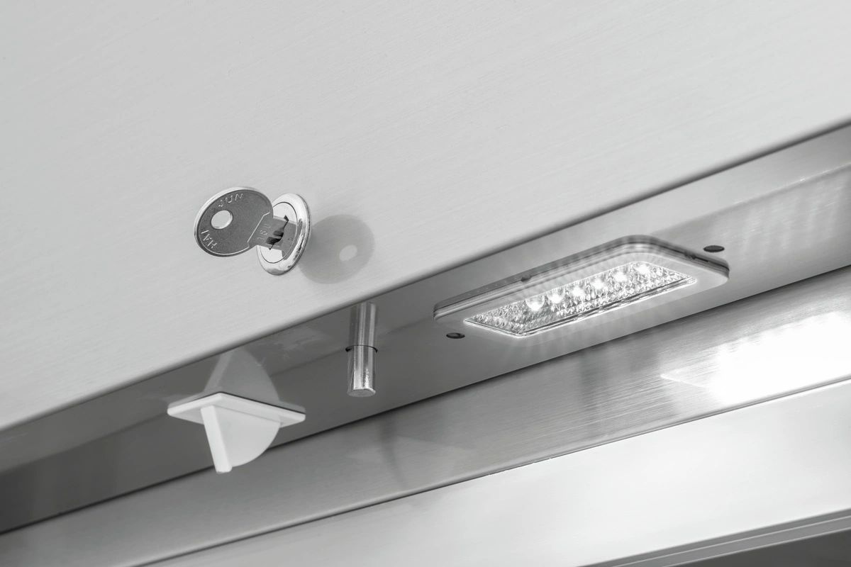 Komfort użytkowania: Wyświetlacz cyfrowy, funkcja automatycznego rozmrażania, możliwość zamknięcia drzwi i kontrolki pracy systemu zapewniają pełną kontrolę nad przechowywaniem.