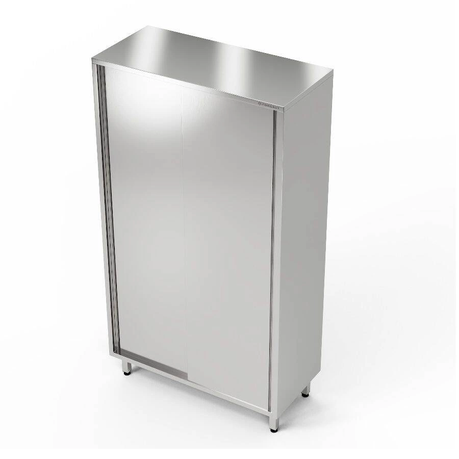 Szafa magazynowa o wymiarach 110x60x200 cm wykonana ze stali nierdzewnej J4. W szafie znajdują się 3 półki. Drzwi przesuwne.