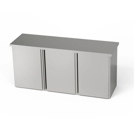 Szafka wisząca z drzwiami otwieranymi o wymiarach 140x40x60 cm. Wykonana ze stali nierdzewnej J4. Grubość blachy 0,8 do 1 mm. Wspólna komora. Wewnątrz szafki znajduje się jedna półka.
