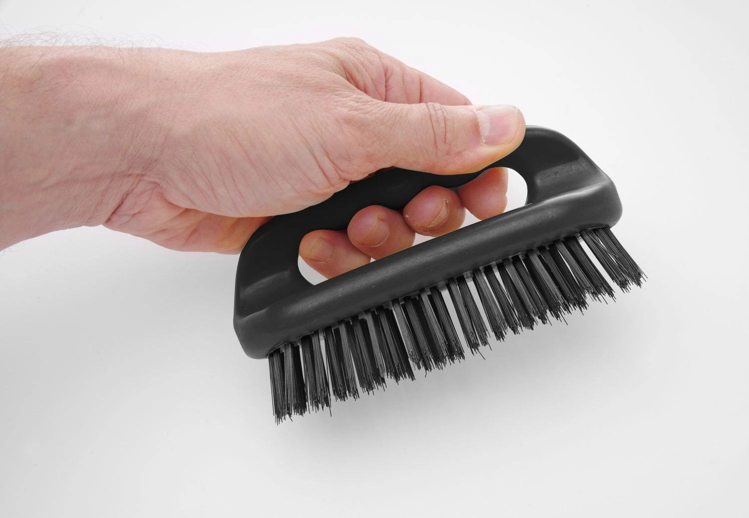 Szczotka do grilla krótka o wymiarach 15x5,5 cm. Poręczny uchwyt wykonany z czarnego tworzywa. Stalowe włosie.