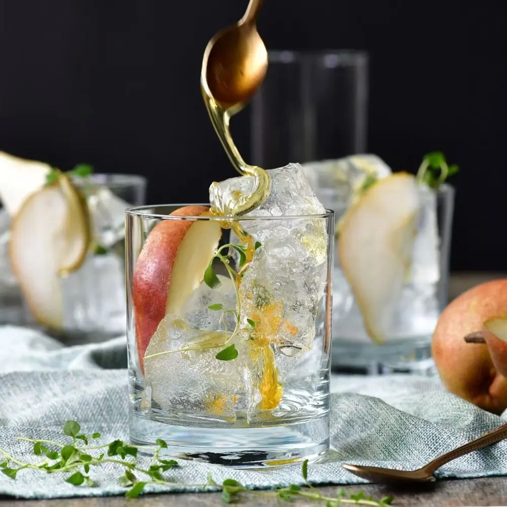 - Średnica: 8,1 cm – wygodna do trzymania i mieszania napojów, a także do serwowania napojów z lodem.