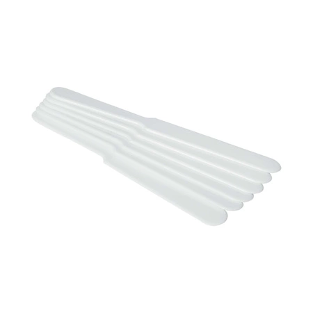 Szpatuły do zbierania piany z piwa wykonane z białego tworzywa.