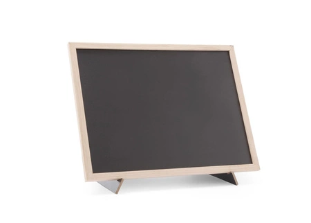 Tablica informacyjna z podstawą. Rama jest drewniana.