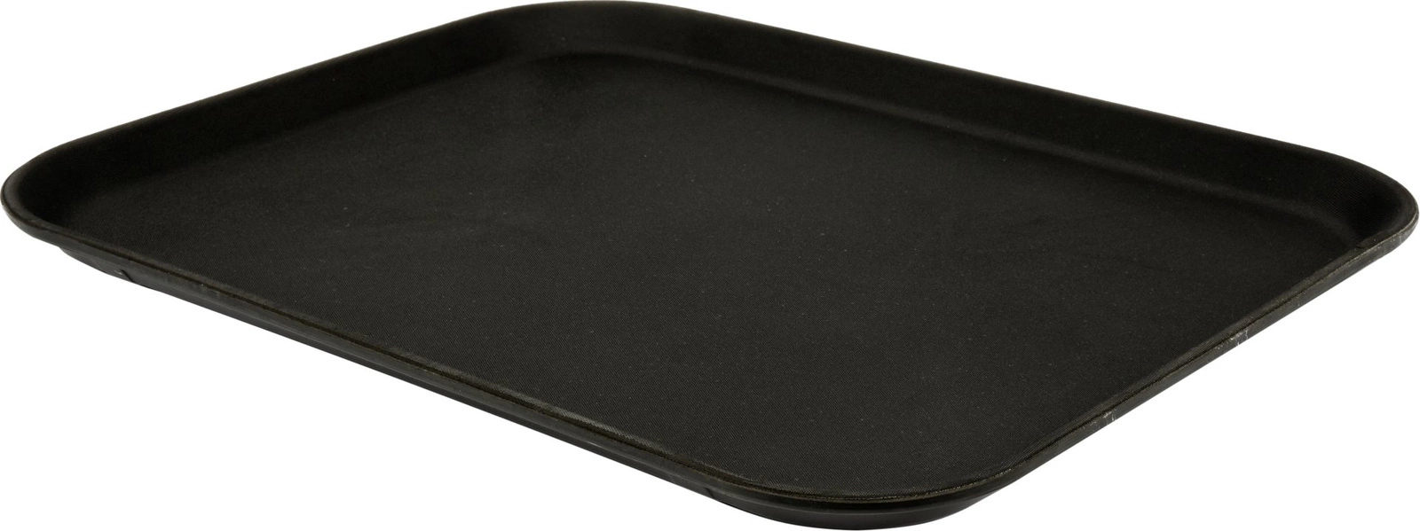 Taca kelnerska antypoślizgowa prostokątna o wymiarach 46x35,5 cm. Kolor czarny. Wielowarstwowe włókno szklane, które zostało użyte do produkcji tacy gwarantuje dużą sztywność i wytrzymałość mechaniczną. Taca posiada ranty, które zabezpieczają produkty przed wypadnięciem. Taca idealnie sprawdzi się w hotelach, restauracjach oraz barach.