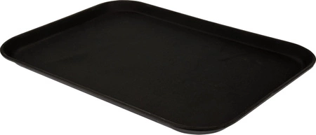 Taca kelnerska antypoślizgowa prostokątna o wymiarach 56x40,5 cm. Kolor czarny. Wielowarstwowe włókno szklane, które zostało użyte do produkcji tacy gwarantuje dużą sztywność i wytrzymałość mechaniczną. Taca posiada ranty, które zabezpieczają produkty przed wypadnięciem. Taca idealnie sprawdzi się w hotelach, restauracjach oraz barach.