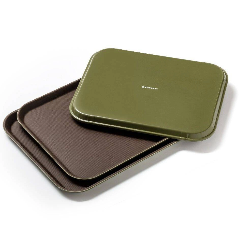 Taca Forgast została zaprojektowana z myślą o intensywnym użytkowaniu w branży gastronomicznej. Powierzchnia robocza wykonana z powłoki kauczukowej nie tylko zabezpiecza naczynia przed przesuwaniem się, ale również ułatwia utrzymanie higieny – wystarczy przetrzeć tacę wilgotną ściereczką. Dolna część w kolorze zielonym zwiększa walory estetyczne i odróżnia tacę od innych produktów. Taca sprawdzi się zarówno podczas obsługi sali restauracyjnej, jak i podczas cateringu, bankietów czy imprez plenerowych.