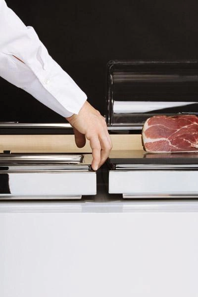 - Wbudowany element chłodzący – dba o odpowiednią temperaturę dań przez długi czas, idealny do prezentacji świeżych produktów na bufecie.