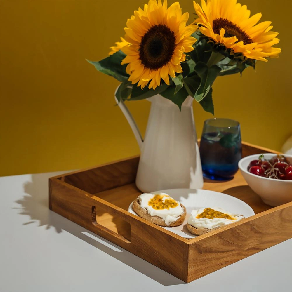Elegancka taca do serwowania wykonana z drewna dębowego to doskonały wybór do każdej kuchni, restauracji lub kawiarni. Jej naturalny wygląd, solidność oraz wygodne uchwyty sprawiają, że idealnie nadaje się do podawania napojów, przekąsek czy śniadań. Taca wyróżnia się nowoczesnym designem i funkcjonalnością, dzięki czemu sprawdzi się zarówno w domu, jak i w profesjonalnych lokalach gastronomicznych.