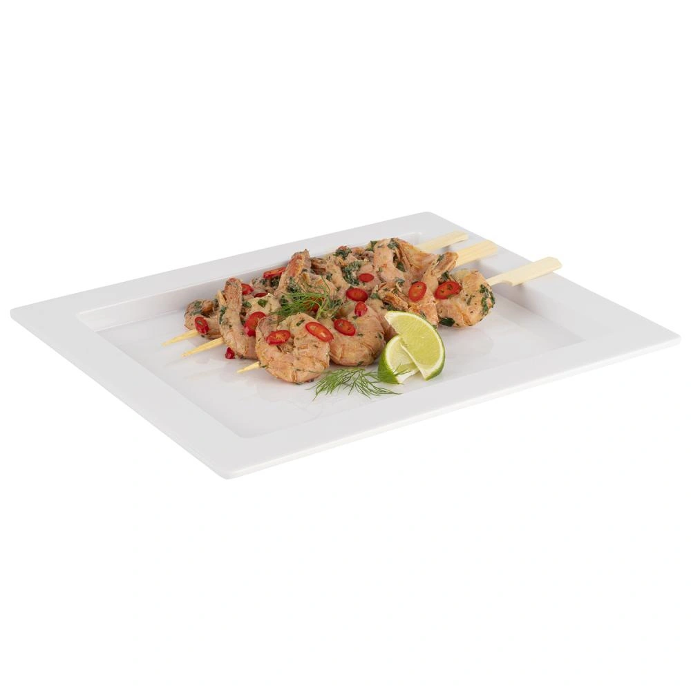 Taca FRAMES GN 1/2 to praktyczne i estetyczne rozwiązanie do serwowania potraw w lokalach gastronomicznych, bufetach oraz na przyjęciach. Wykonana z trwałej melaminy, charakteryzuje się odpornością na uszkodzenia oraz łatwością w utrzymaniu czystości. Jej biały kolor oraz prostokątny kształt sprawiają, że doskonale prezentuje się w każdej aranżacji stołu.