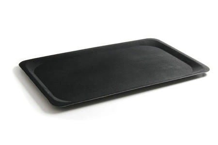 Taca poliestrowa, antypoślizgowa do serwowania, prostokątna w standardzie GN 1/1. Kolor czarny. Wytrzymała na duże obciążenie. Odporna na wstrząsy i złamania.