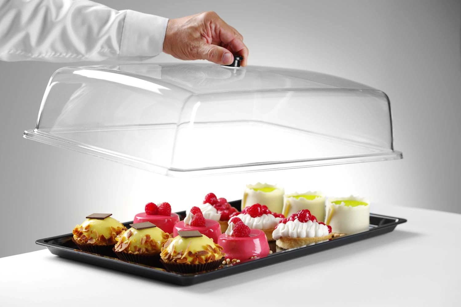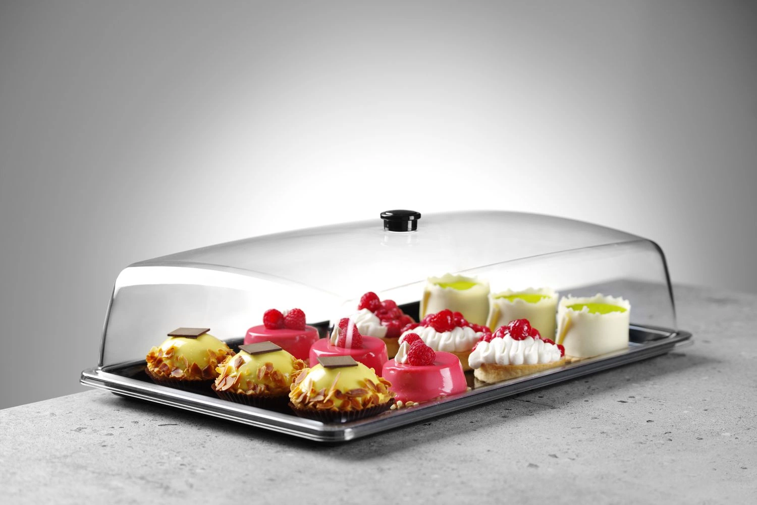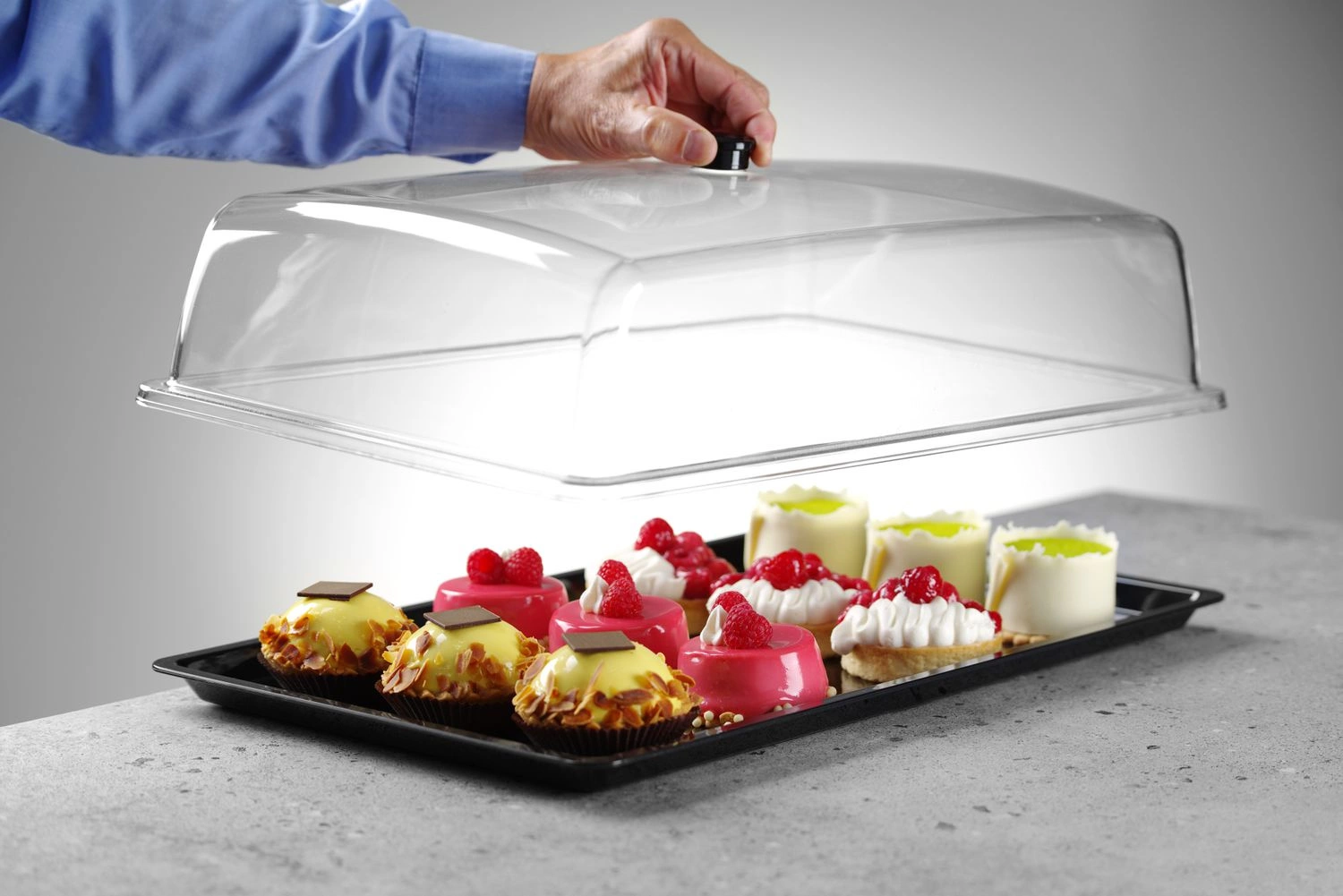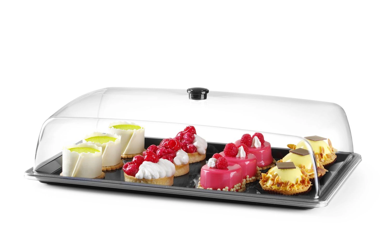 Taca prostokątna ze zdejmowaną pokrywą Hendi o rozmiarze 53,5x33,5x16,5 cm. Taca wykonana z czarnego poliwęglanu. Pokrywa wykonana z przezroczystego poliwęglanu, posiada praktyczny uchwyt. Materiał wykonania tacy i pokrywy dopuszczony do kontaktu z żywnością, nie pochłania smaków i zapachów. Taca i pokrywa odporne na działanie temperatur od -40 do +99 stopni cesjusza. Całość nadaje się do mycia w zmywarce. W razie uszkodzenia produktu całość podlega recyklingowi.