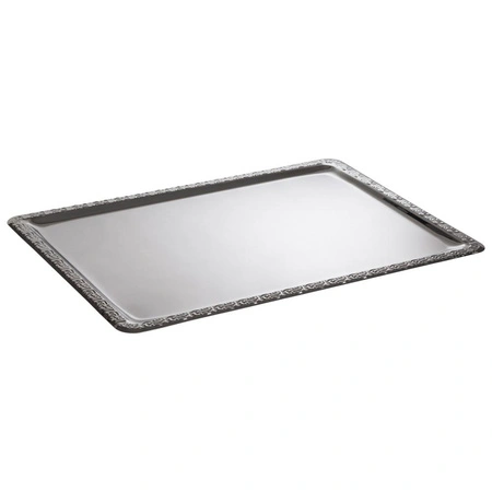 Produkt został wykonany z wysokiej jakości stali nierdzewnej 18/0, która zapewnia odporność na uszkodzenia mechaniczne oraz łatwe utrzymanie czystości. Ozdobny rant nie tylko pełni funkcję dekoracyjną, ale także wzmacnia konstrukcję tacy, zwiększając jej wytrzymałość. Gładka powierzchnia pozwala na szybkie i higieniczne czyszczenie po każdym użyciu.