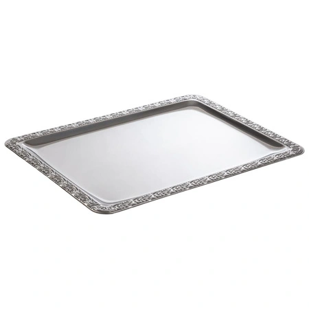 Produkt został wykonany z wysokiej jakości stali nierdzewnej 18/0, co zapewnia mu długą żywotność i odporność na uszkodzenia mechaniczne. Dekoracyjna krawędź nadaje tacy wyjątkowego charakteru, a gładka powierzchnia ułatwia czyszczenie po każdym użyciu. Zastosowane materiały są bezpieczne w kontakcie z żywnością.