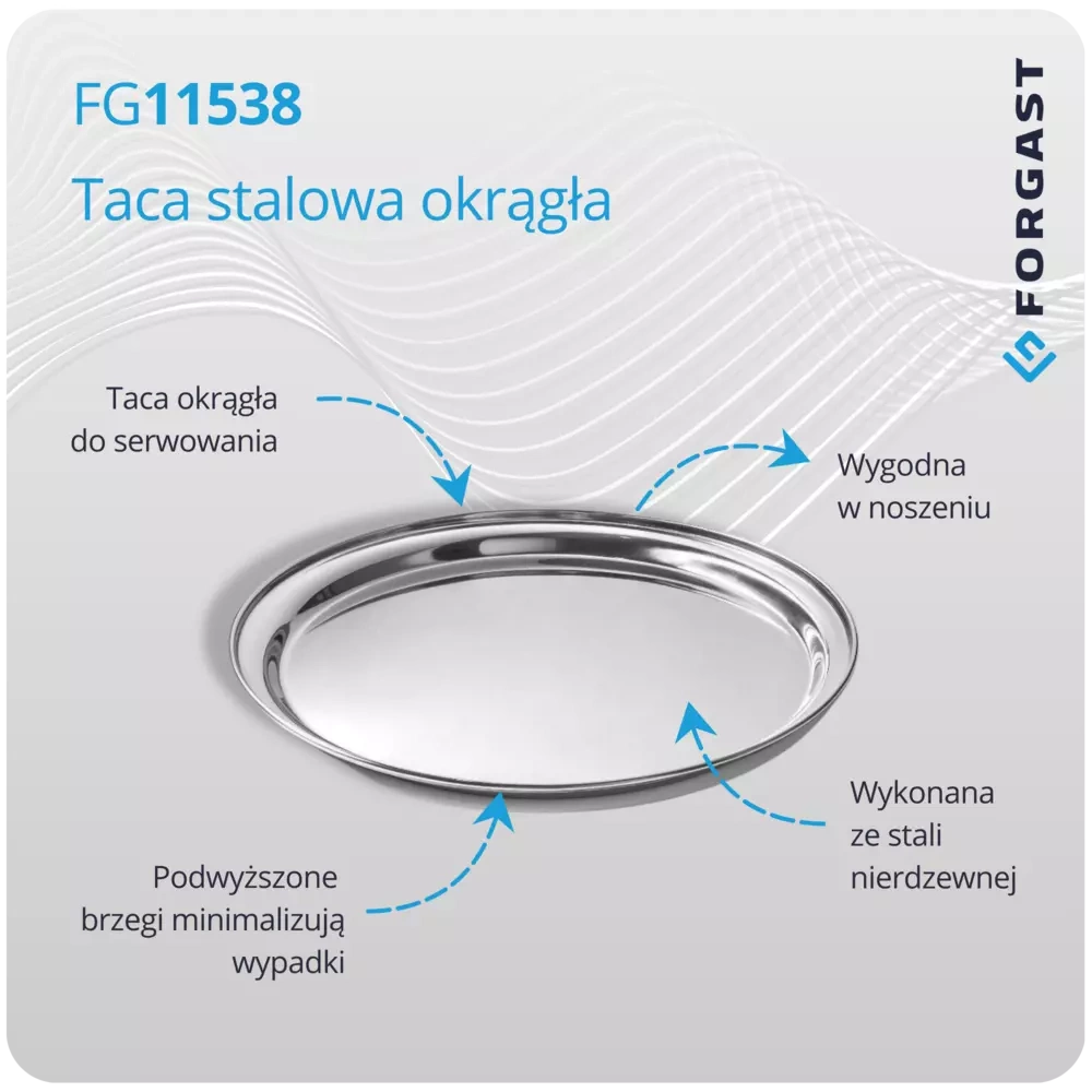 Taca stalowa okrągła śr. 41 cm FORGAST FG11538 to propozycja dla osób ceniących sobie profesjonalizm, trwałość oraz estetykę w codziennej pracy. Dzięki solidnemu wykonaniu i uniwersalnemu kształtowi taca sprawdzi się zarówno w gastronomii, jak i podczas domowych przyjęć. Łatwość czyszczenia, odporność na uszkodzenia oraz duża powierzchnia użytkowa czynią ten produkt niezawodnym narzędziem do serwowania różnorodnych potraw i napojów. Wybierając ten model, inwestujesz w funkcjonalność i komfort pracy.