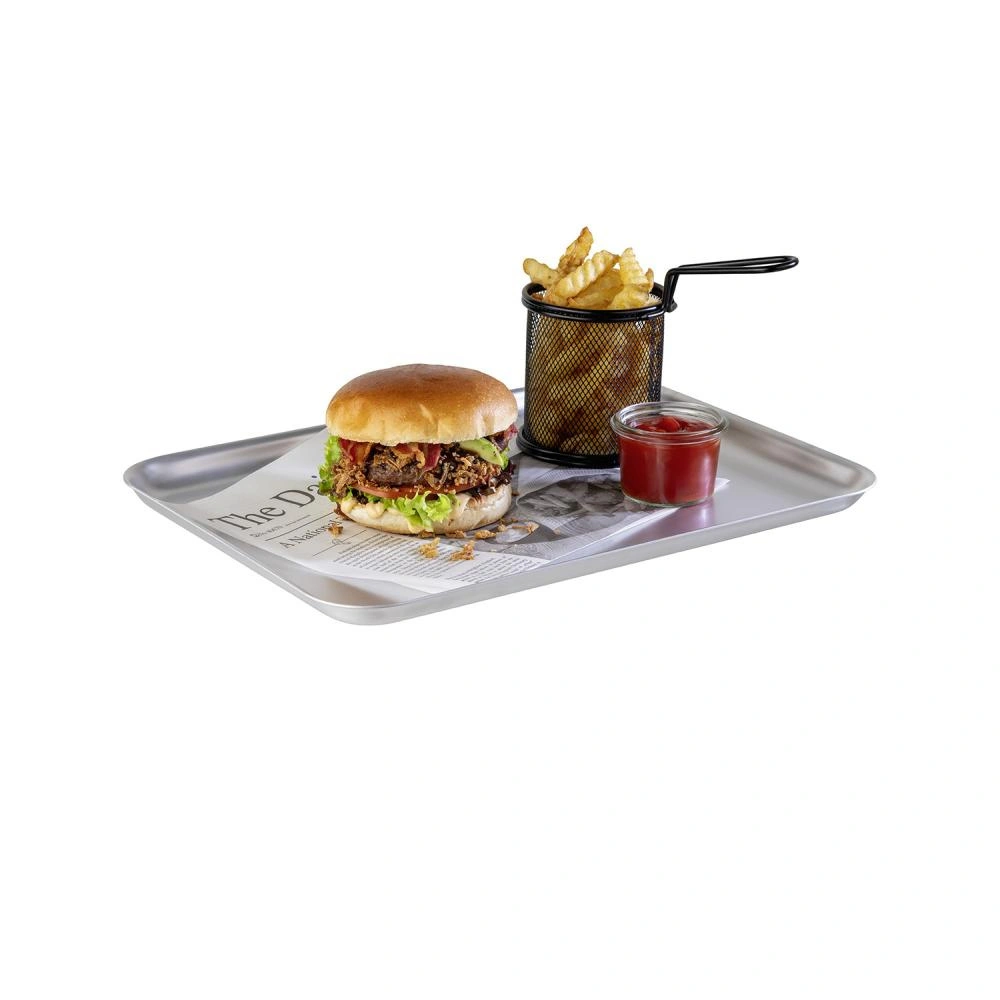 • Nowoczesny design – prostokątny kształt i klasyczny kolor o wyglądzie stali nierdzewnej sprawiają, że taca prezentuje się estetycznie na stole.