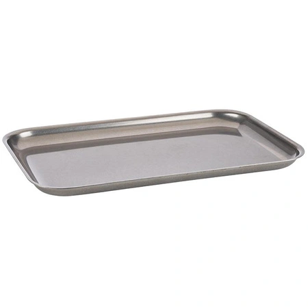 Taca VINTAGE to funkcjonalny i elegancki element wyposażenia, wykonany z wysokiej jakości stali nierdzewnej. Charakterystyczny wygląd postarzanej powierzchni nadaje jej wyjątkowego, retro stylu, który doskonale sprawdzi się zarówno w nowoczesnych, jak i klasycznych wnętrzach. Prostokątny kształt i uniwersalny rozmiar umożliwiają wygodne serwowanie napojów, przekąsek czy dań podczas spotkań rodzinnych, w restauracjach i hotelach.