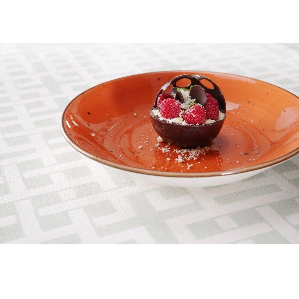 Porcelana typu Vitrified. Ręcznie zdobiona. W soczystym kolorze pomarańczowym - będzie stanowić piękne tło dla prezentowanych dań. Porcelana odporna i wytrzymała. Temperatura wypalania: 1040 i 1400oC. Odporna na temperaturę  - do 180oC. Można myć w zmywarce, używać w mikrofalówce.