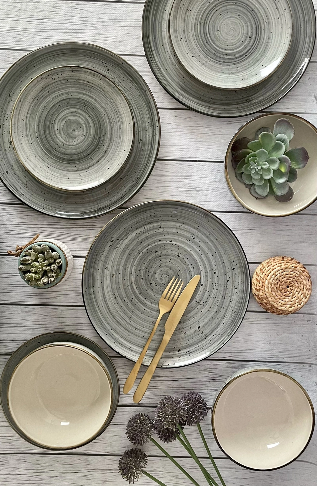 - Nowoczesny, rustykalny styl – Szary kolor i nieregularne wykończenie doskonale komponują się z innymi elementami zastawy stołowej, wprowadzając ciepłą, przytulną atmosferę do wnętrza.