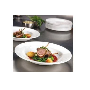 Talerz płytki głęboki z szerokim rantem porcelanowy z linii PROFILE marki Churchill. Linię opracowano specjalnie z myślą o cateringu i obsłudze dużych grup na bankietach i śniadaniach. Naczynia Churchill są o 20% lżejsze niż standardowe , a jednocześnie zachowują bezkompromisową trwałość. Linia objęta 5-letnią gwarancją umożliwiającą bezkosztową wymianę każdego obtłuczonego/uszczerbionego talerza na nowy.