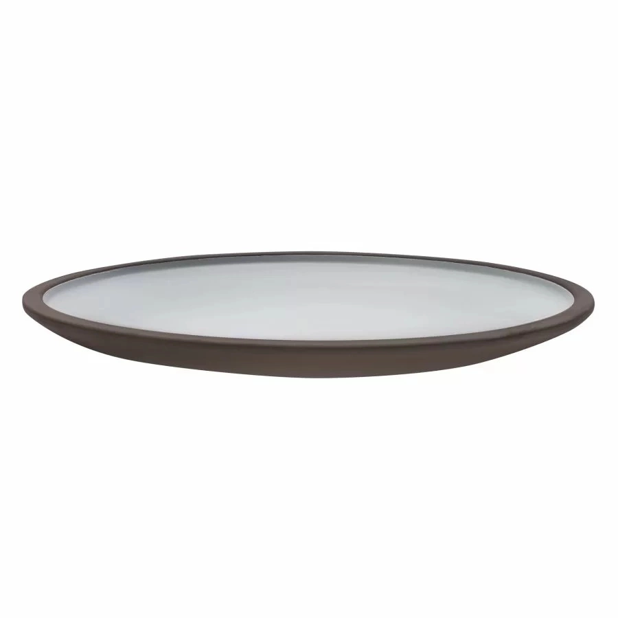Talerz płaski VERLO z linii CHOCO to doskonałe połączenie elegancji i finezji kolorów, które wzbogaci każde nakrycie stołu. Waniliowa biel idealnie kontrastuje z matowym, czekoladowym brązem zewnętrznej części talerza. Wyraźnie zarysowany, płaski rant w brązowym odcieniu nie tylko dodaje uroku, ale także podkreśla subtelne barwy porcelany, tworząc harmonijną całość. Talerz ten cechuje prosta, ale wyrafinowana forma, która doskonale sprawdzi się zarówno w codziennym użytkowaniu, jak i w eleganckich aranżacjach stołowych. Dzięki ręcznemu wykończeniu każdy egzemplarz zyskuje unikalny charakter, co czyni tę porcelanę wyjątkową.