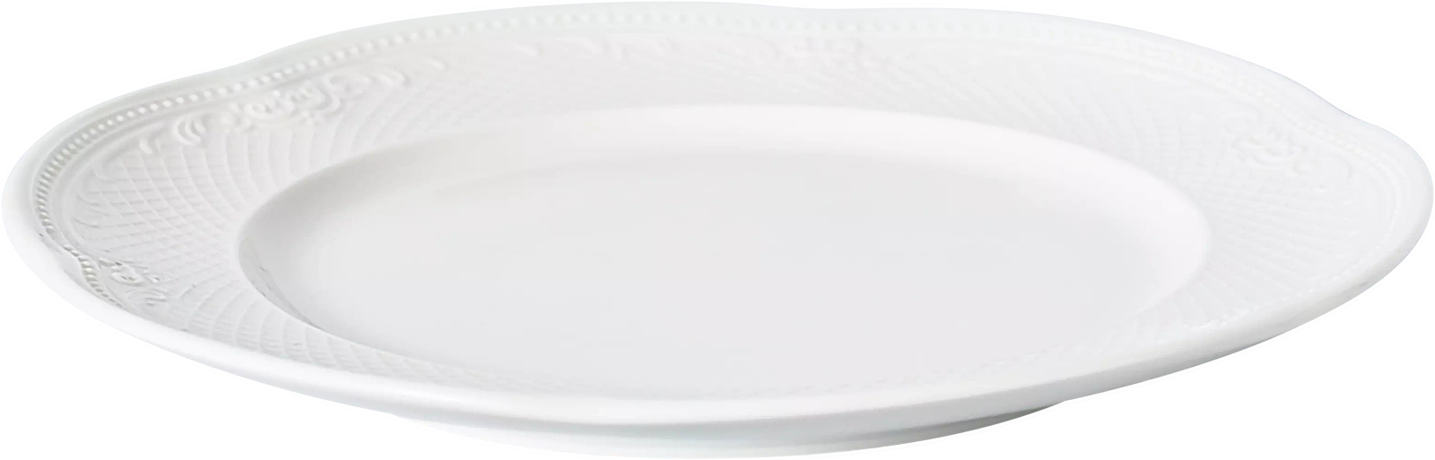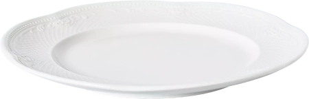 Talerz płaski Noble to elegancki element zastawy stołowej wykonany z wysokiej jakości porcelany. Jego cechą wyróżniającą jest subtelnie zdobiony rant motywem szlacheckim oraz delikatny kształt przypominający kwiat, co sprawia, że doskonale nadaje się zarówno do codziennych posiłków, jak i wyjątkowych okazji. Idealny do serwowania dań głównych, przekąsek czy deserów, podkreślając estetykę każdego stołu.
