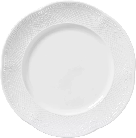 - Subtelne zdobienie rantu – delikatny motyw szlachecki na obrzeżu talerza sprawia, że prezentuje się on niezwykle stylowo i elegancko, idealnie komponując się z klasycznymi oraz nowoczesnymi aranżacjami stołu.