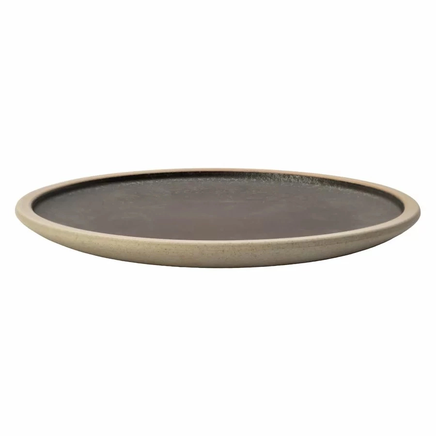 Talerz płaski VERLO z linii SIMPLY to elegancki i funkcjonalny element zastawy, który doskonale wpasuje się w każdą aranżację stołu. Kolekcja SIMPLY łączy naturalne odcienie porcelany w barwach piasku pustyni z głębokim, metalicznym brązem, tworząc wyjątkową, subtelną kompozycję kolorystyczną. Wewnętrzne zabarwienie talerza w odcieniu metalicznego brązu delikatnie odbija światło, podkreślając jego wyrafinowany charakter. Surowe, szorstkie wykończenie zarówno wewnętrznej, jak i zewnętrznej powierzchni talerza dodaje niepowtarzalnego stylu. Charakterystycznym elementem tej linii jest gruby, płaski rant w naturalnym kolorze porcelany, który stanowi elegancki akcent, podkreślając prostotę formy.