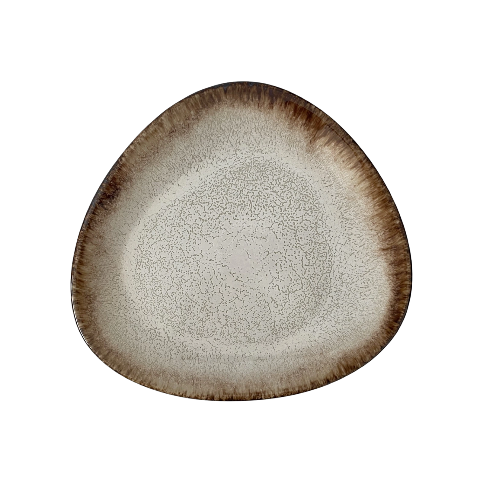 - Kształt: trójkątny z zaokrąglonymi rogami – nadaje nowoczesny charakter i wyróżnia się wśród klasycznych talerzy.
