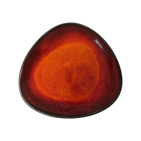 Talerz płytki Delta Cristall rubin 26 cm to oryginalny element zastawy stołowej wykonany z wysokiej jakości kamionki. Charakterystyczny trójkątny kształt z zaokrąglonymi rogami oraz efektowne, unikatowe szkliwienie w intensywnym rubinowym kolorze sprawiają, że naczynie doskonale prezentuje się na stole. Idealny do codziennego użytku, a także do serwowania dań podczas spotkań rodzinnych i towarzyskich.