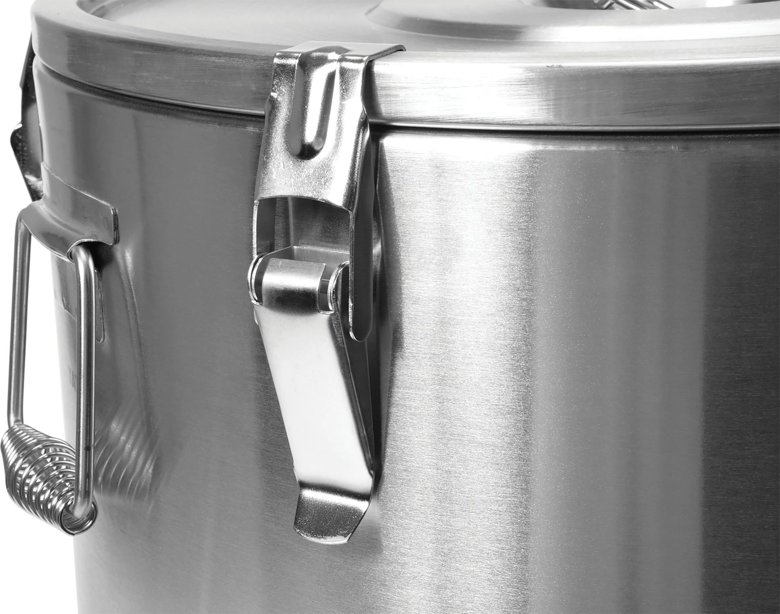 Termos posiada uszczelkę wykonaną z sylikonu, która zapobiega rozlewaniu się płynnych produktów. Spód termosów wyposażony w gumę, dzięki czemu termosy nie przemieszczają się podczas transportu. Możliwość ustawiania jeden na drugim termosów o takiej samej średnicy, maksymalnie do pojemności 35 l.