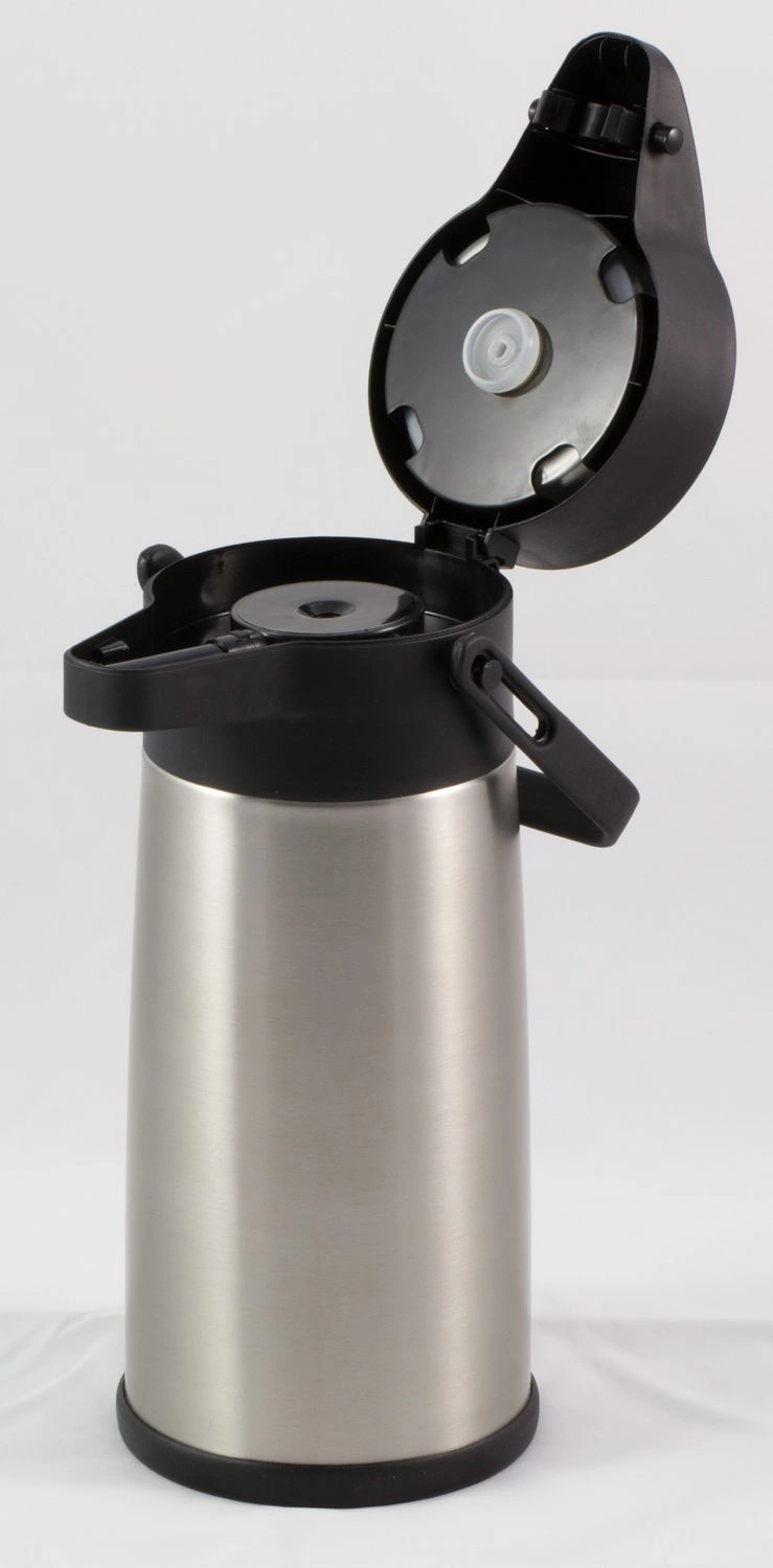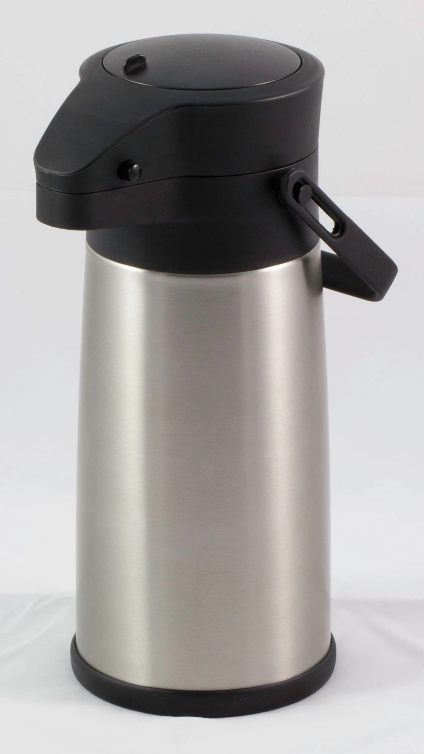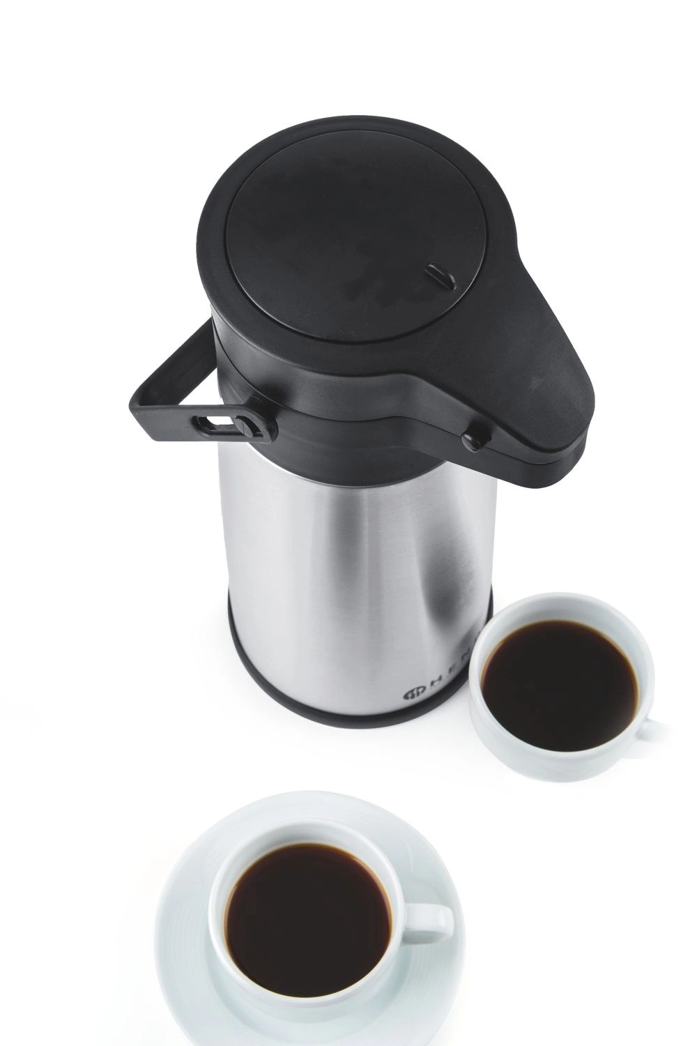 Termos z pompką o pojemności 2,2 l na gumowanej podstawie wykonany ze stali nierdzewnej. Wkład termosu - stal nierdzewna, pokrywa i uchwyt z polipropylenu.