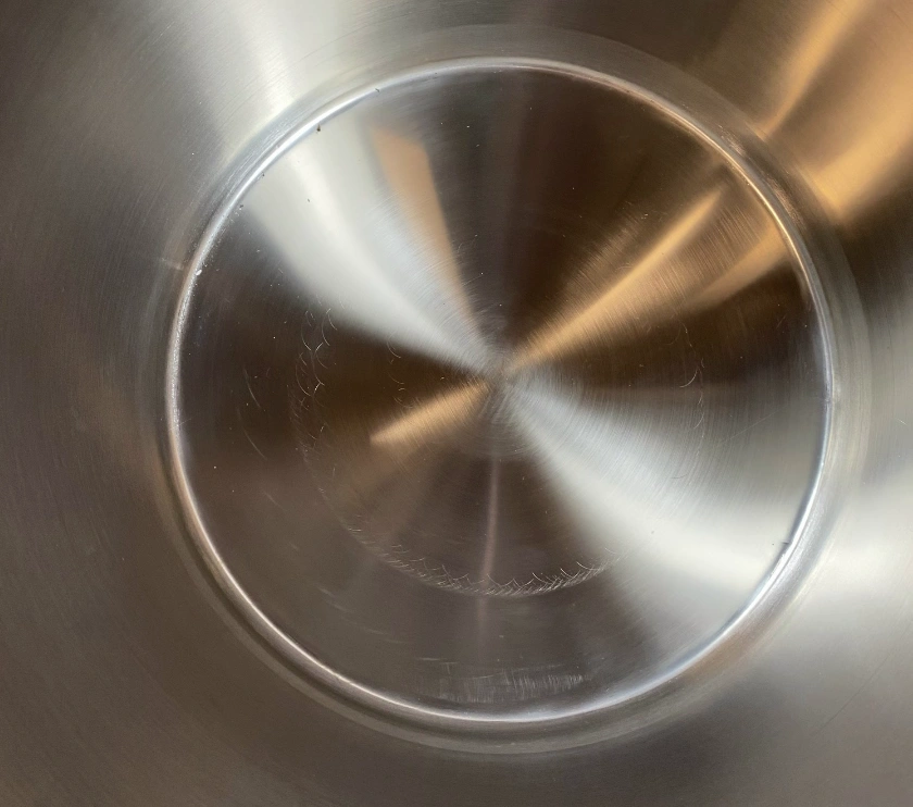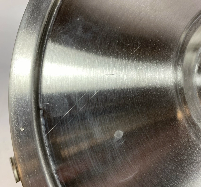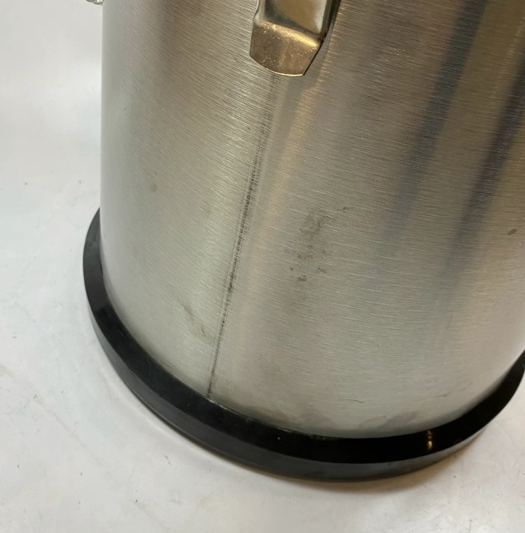 Posiada widoczne na zdjęciach zarysowania oraz wady produkcyjne (pionowa, ciągła rysa na powierzchni stali nierdzewnej – widoczna na zewnętrznej ściance termosu).
