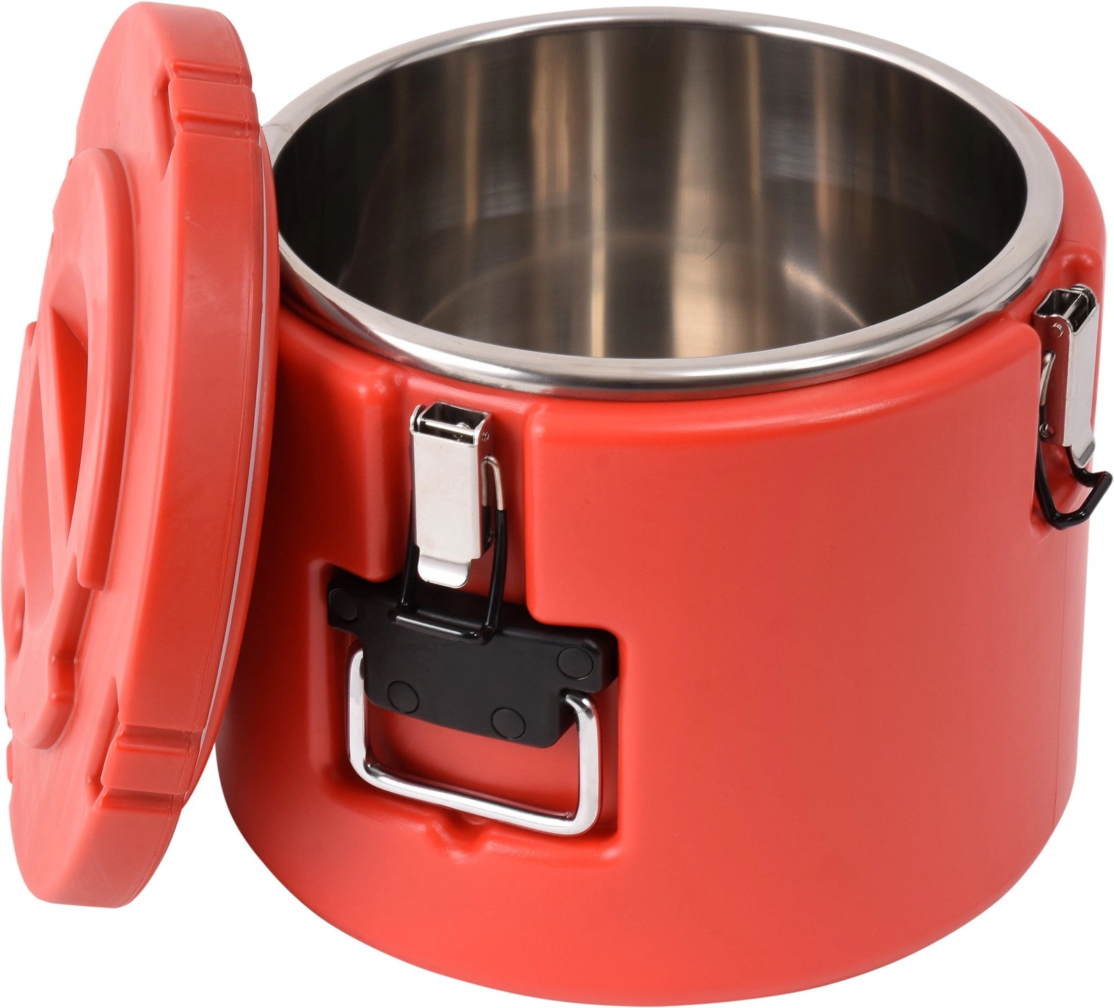 Termos do transportu żywności marki YATO pojemności 15 l. Korpus pojemnika wykonany jest z wytrzymałego polietylenu, odpornego na zarysowania i wgniecenia, co sprawia, że jest niezwykle wytrzymały na uszkodzenia podczas intensywnego użytkowania i transportu. Wewnętrzny zbiornik z wysokiej jakości stali nierdzewnej jest nie tylko odporny na działanie kwasów organicznych, ale również łatwy do utrzymania w czystości, zapewniając trwałą higienę przechowywanej żywności. Średnica wewnętrzna termosu wynosi 28 cm, wysokość wewnętrzna natomiast wynosi 24 cm.