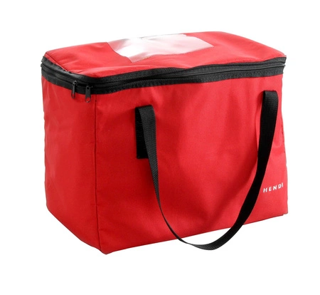 Torba do transportu lunchboxów marki Hendi. Posiada szczelne zamknięcia na zamek. Mocny i łatwy do czyszczenia materiał. Przegroda na środku oddziela wnętrze, mocowana na rzepy.