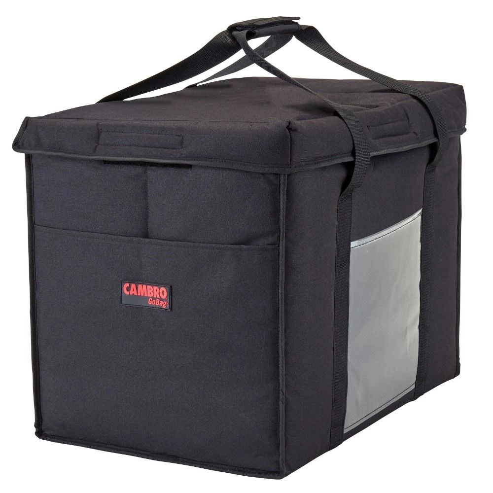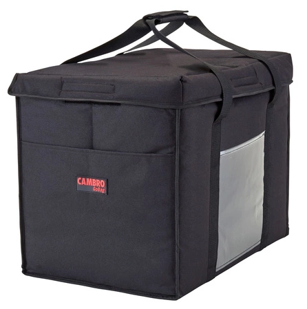 Torba termoizolacyjna do dan na wynos, składana marki Cambro. Wykonana z nylonowego materiału skutecznie odprowadzającego wilgoć. Winylowe wnętrze torby uławia utrzymanie jej w czystości. Wysoka gęstość warstwy izolacyjnej zapewnia utrzymanie właściwej temperatury dań. Torba posiada pojemną kieszeń na rachunki. Otwieranie od góry ułatwia wkładanie i wyjmowanie potraw. Torba termoizolacyjna Cambro to idealne rozwiązanie dla punktów gastronomicznych ofertujących usługi cateringowe. Pojemność torby wynosi ok 78 litry. Kolor czarny.