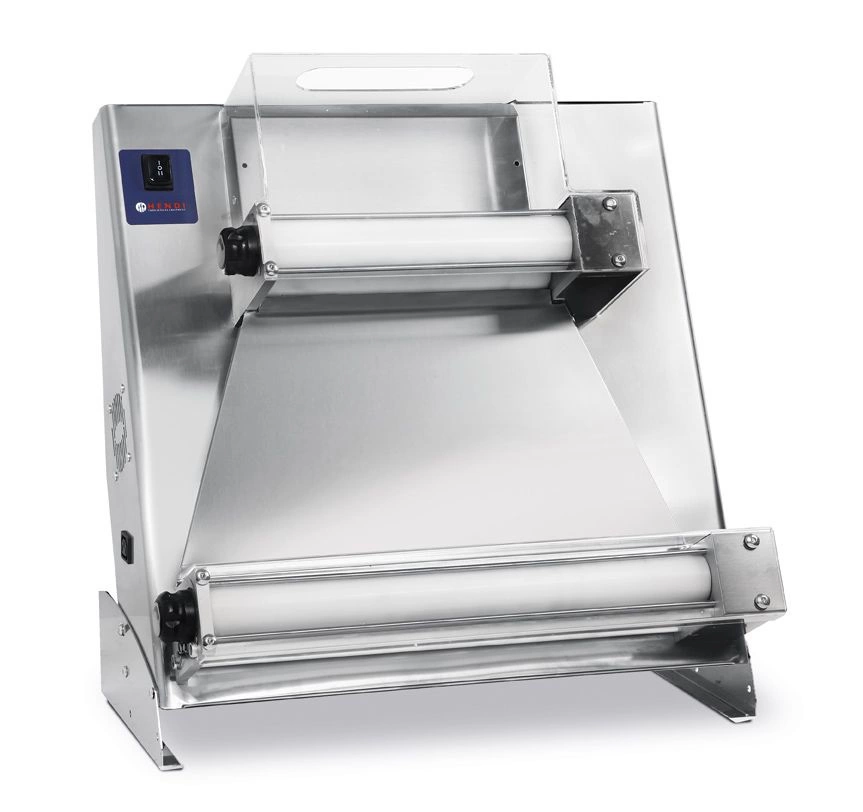 Elektryczne urządzenie do formowania pizzy (wałkownica) wykonane ze stali nierdzewnej. Elektryczny pedał nożny. Urządzenie idealne do wałkowania zimnego ciasta na pizzę, pierogi i makaron.