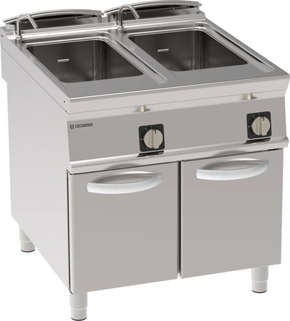 Urządzenie wyposażone jest w dwa zbiorniki o pojemności 40 litrów każdy, co łącznie daje 80 litrów przestrzeni do gotowania makaronu. Dzięki mocy grzewczej 30 kW, makaron jest gotowany w krótkim czasie, co pozwala na zwiększenie wydajności w kuchni. Zbiorniki wykonane są z wysokiej jakości stali nierdzewnej AISI 316, co zapewnia odporność na korozję oraz długotrwałość urządzenia. Konstrukcja urządzenia została zaprojektowana w sposób zapewniający łatwą instalację i użytkowanie.
