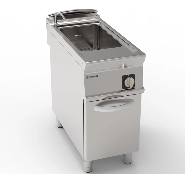 Urządzenie ma pojemność 40 litrów i moc grzewczą wynoszącą 15 kW, co zapewnia szybkie gotowanie makaronu przy minimalnym zużyciu energii. Zbiornik wykonany jest z wysokiej jakości stali nierdzewnej AISI 316, zapewniając odporność na korozję oraz długowieczność urządzenia. Model 313070 jest wyposażony w funkcjonalną szafkę zamykaną, co pomaga utrzymać porządek w kuchni i zapewnia dodatkową przestrzeń do przechowywania akcesoriów.