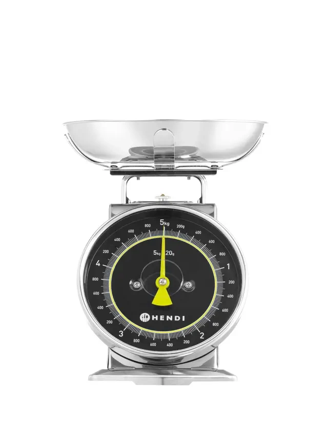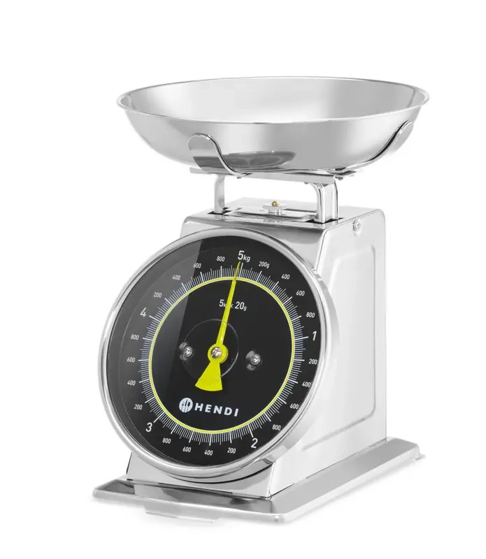 Waga kuchenna HENDI 580042 to klasyczne urządzenie mechaniczne, które doskonale sprawdzi się zarówno w domowej kuchni, jak i w profesjonalnych lokalach gastronomicznych. Jej główne cechy to niezawodność, wytrzymała konstrukcja ze stali nierdzewnej oraz precyzyjne ważenie do 5 kg. Dzięki czytelnej, analogowej tarczy i manualnemu zerowaniu, korzystanie z niej jest niezwykle intuicyjne, a pomiar zawsze dokładny.
